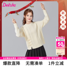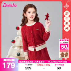 旗舰店女童毛衣2023冬季新款女大童儿童新年装红色针织衫迪莎