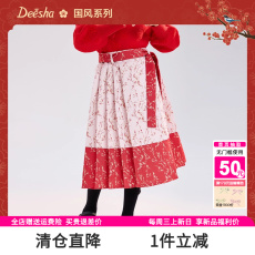 女童马面裙2023秋冬装新款中大童儿童宝宝红色洋气长裙半身裙