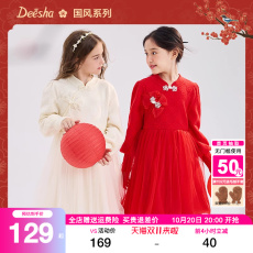 女童连衣裙秋冬装新款大童儿童新年装红色网纱公主裙子拜年服