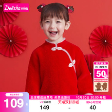 童装女童加绒卫衣官方冬季新款青少年儿童本命年上衣新年红色
